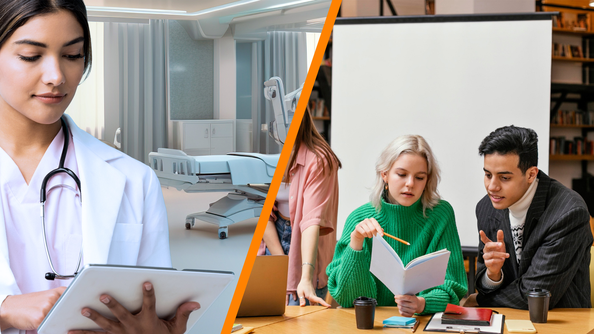 Radiant integrates digital signage and AV systems for hospitals, clinics, universities, and education facilities, supporting communication, wayfinding, donor recognition, classrooms, and shared spaces.